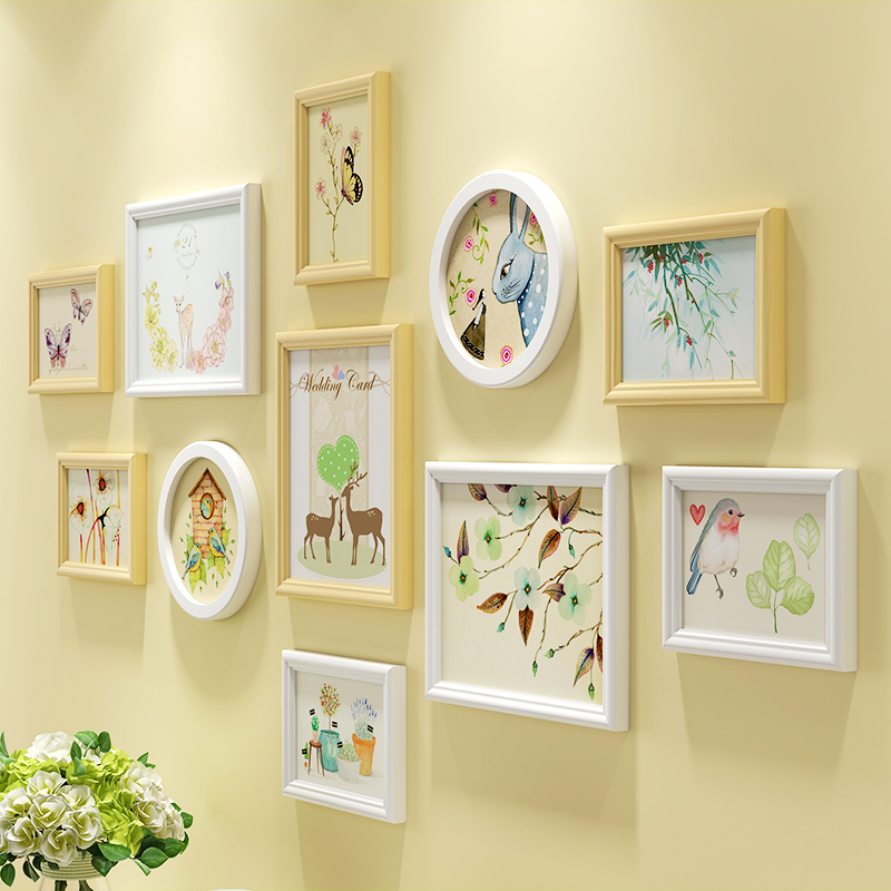 简约现代实木照片墙免打孔装饰欧式相框墙创意挂墙组合卧室相片墙热门设计联盟服务商