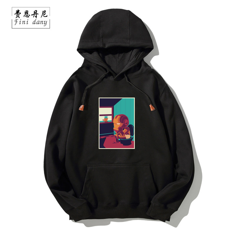 漫威钢铁侠卡通幽默趣味恶搞同人画师艺术设计复古日系连帽卫衣热门设计联盟服务商