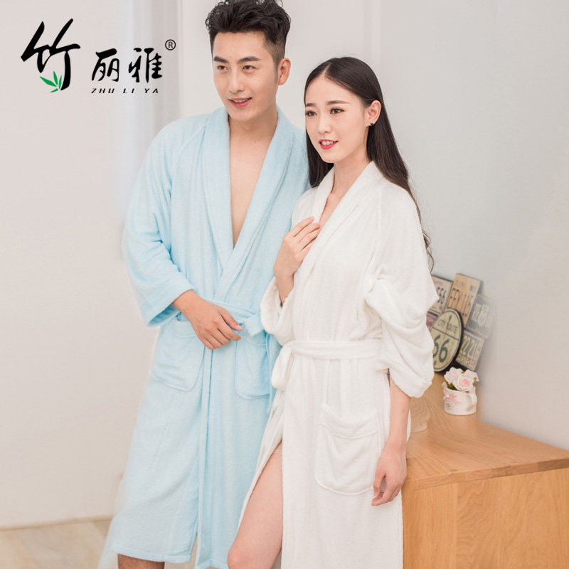 竹纤维五星级酒店浴袍女夏长款纯棉毛巾料睡袍男情侣全棉吸水速干热门设计联盟服务商