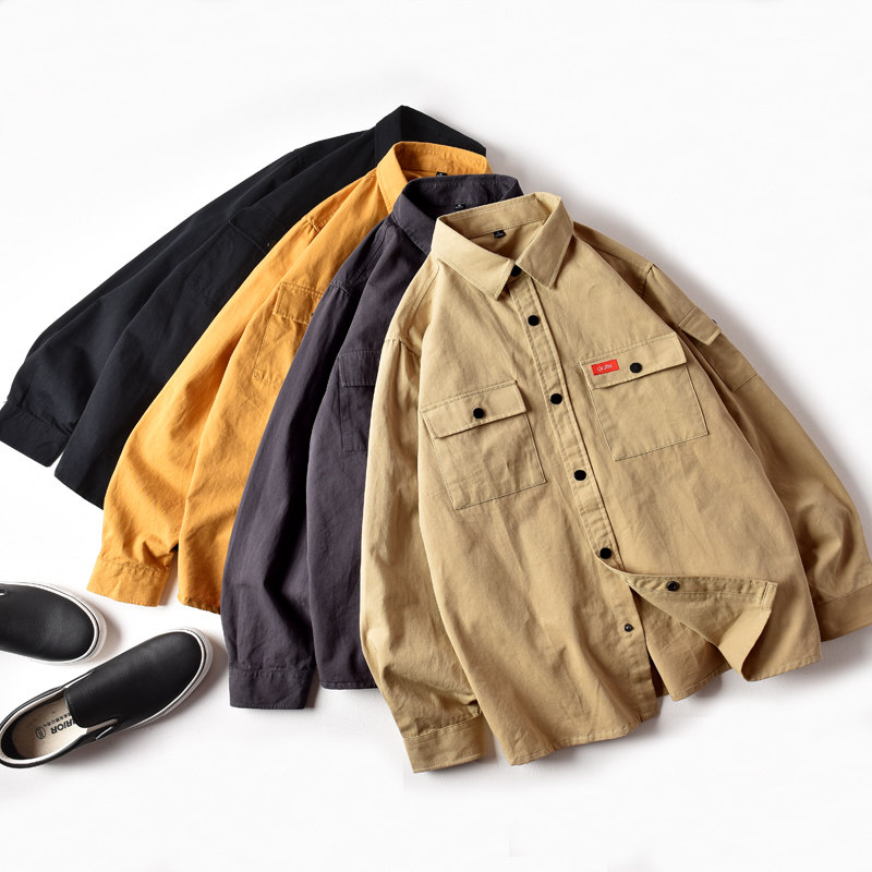 扎实挺括!欧美复古工装长袖衬衣男装日系潮流简约休闲衬衫外套热门设计联盟服务商