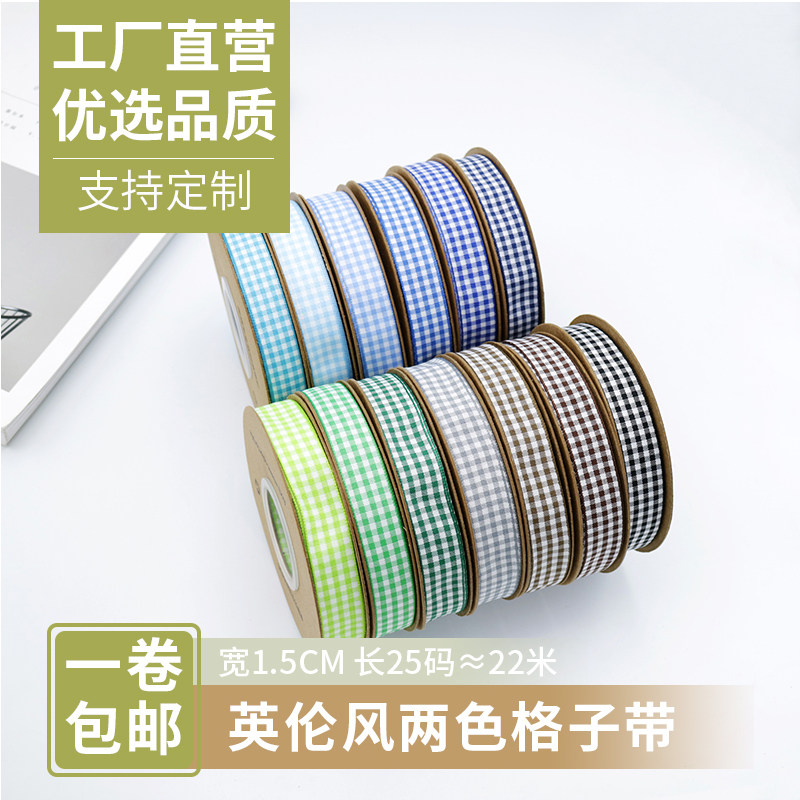 奥祺1.5cm复古高档格子丝带蛋糕包装婚庆装饰diy胸针蝴蝶结织带热门设计联盟服务商