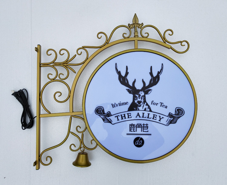 铁艺灯箱广告牌侧招牌LED圆形双面亚克力户外防水防晒挂墙式热门设计联盟服务商