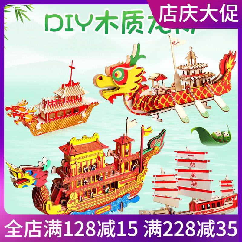 手工diy制作端午节龙舟模型拼图拼版 立体拼装材料包3d益智玩具热门设计联盟服务商