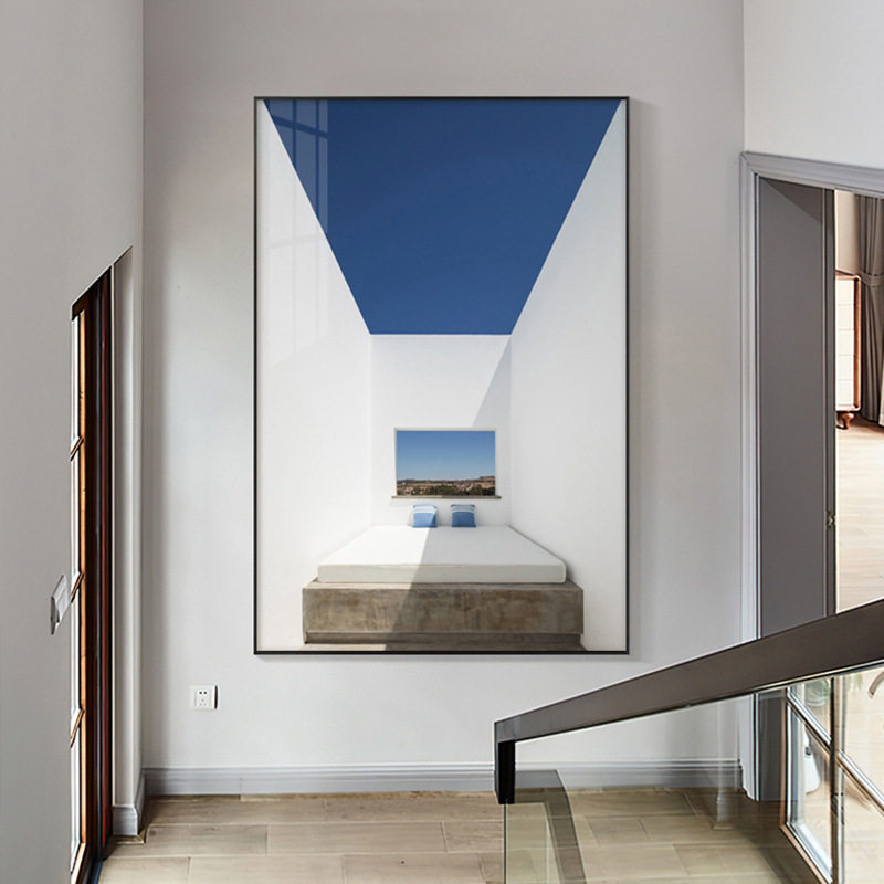 现代客厅蓝色建筑装饰画过道走廊玄关竖版挂画纵深空间办公室壁画热门设计联盟服务商