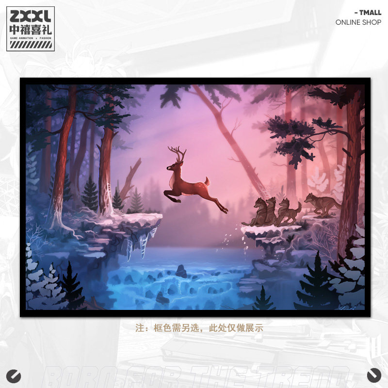创意梅花鹿驯鹿插画周边卧室客厅墙布装饰画书房挂画网咖壁画热门设计联盟服务商