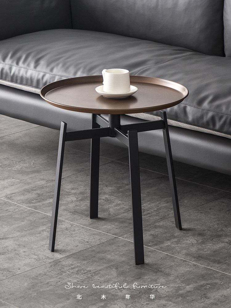 轻奢简约意式圆形金属边几设计师样板房北欧工业风角几现代小茶几热门设计联盟服务商