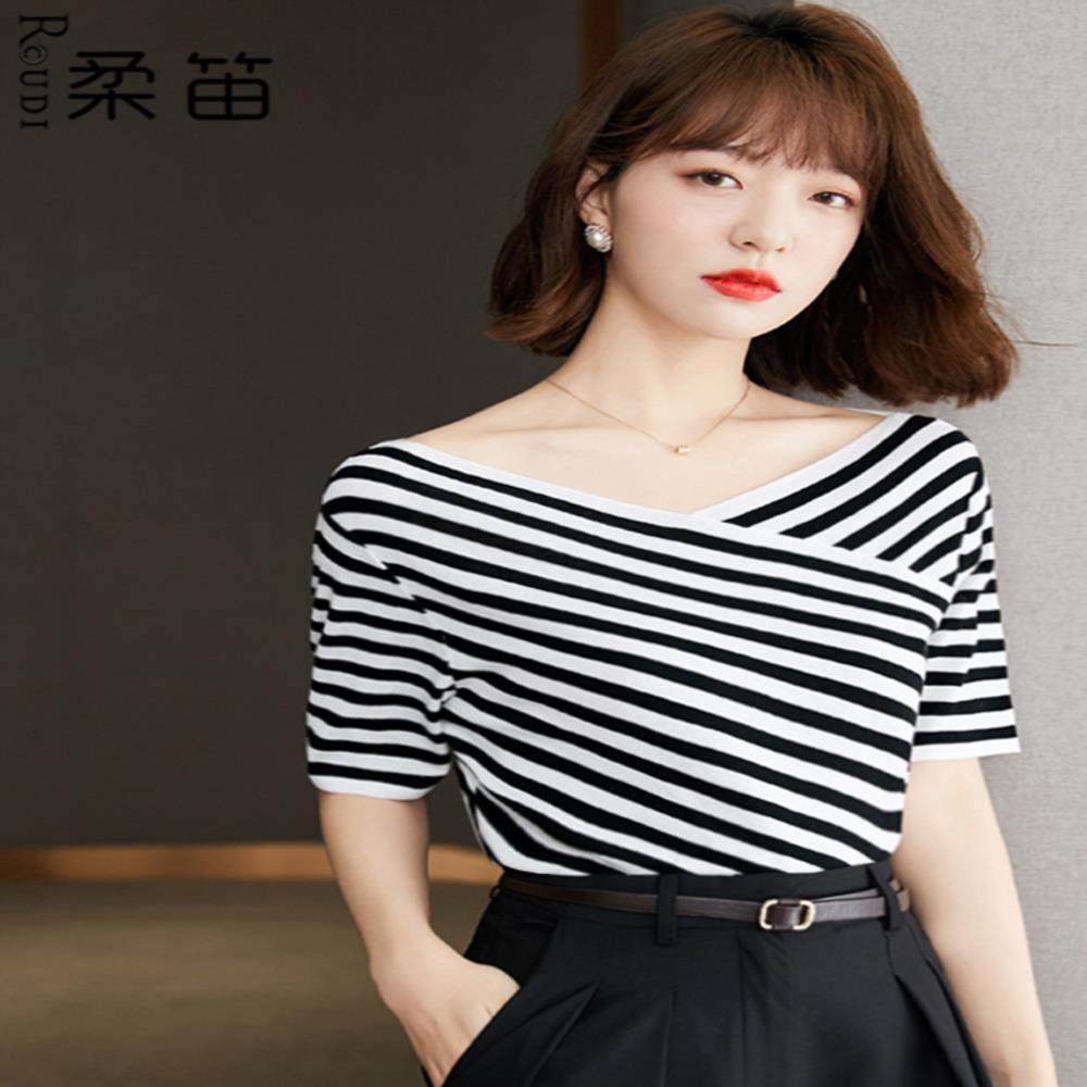 条纹t恤女装夏装2021年新款宽松短袖小众设计感短款上衣夏季薄款热门设计联盟服务商