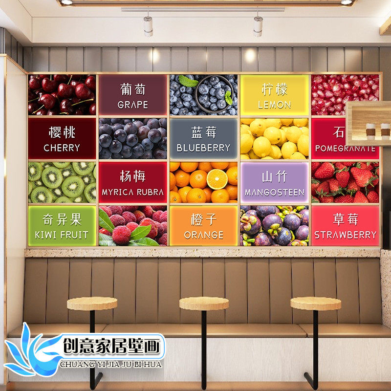 水果档装修背景墙纸蔬菜果汁超市墙面装饰壁纸奶茶店休闲餐吧墙布热门设计联盟服务商