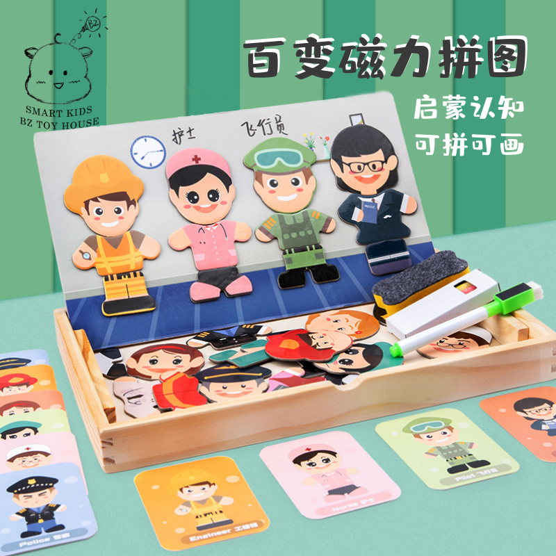 儿童早教磁力拼拼乐人物认知交通工具双面多功能画板拼图玩具热门设计联盟服务商