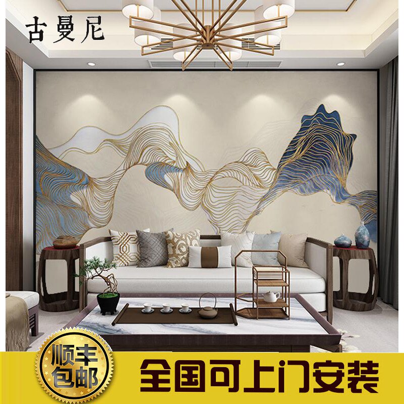 墙纸电视客厅现代壁纸背景墙禅沙B发新线条墙简约布影视意中式抽热门设计联盟服务商