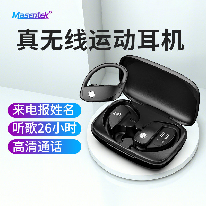 Masentek T16蓝牙耳机真无线TWS分离式挂耳式耳挂式超长待机续航耳麦跑步运动听歌开车防水防汗安卓苹果通用热门设计联盟服务商