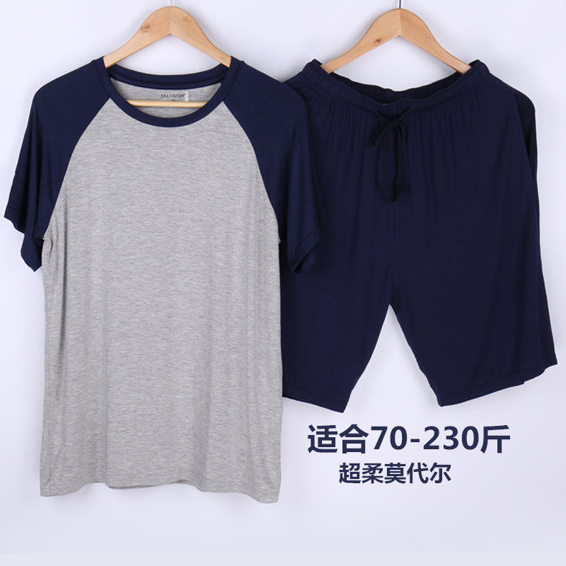 男莫代尔短袖短裤套装宽松大码200斤家居服可外穿爸爸休闲五分裤热门设计联盟服务商