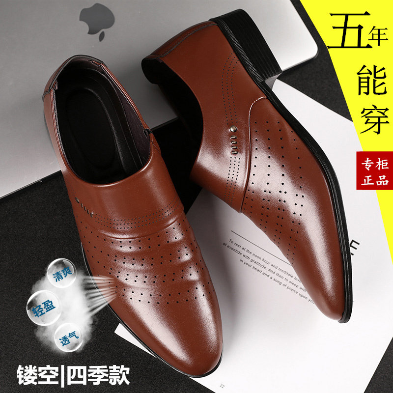 皮鞋男春季英伦商务正装男士透气鞋韩版休闲镂空男鞋子黑色凉鞋夏热门设计联盟服务商