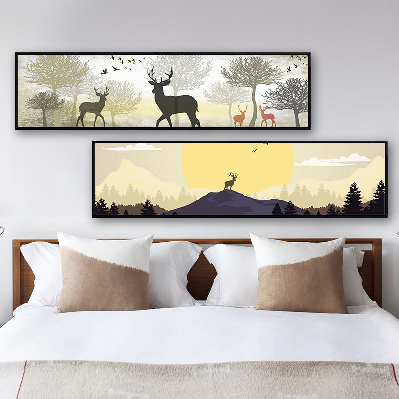 北欧简约卧室装饰画现代房间墙面装饰挂画床头背景墙横幅长条壁画热门设计联盟服务商