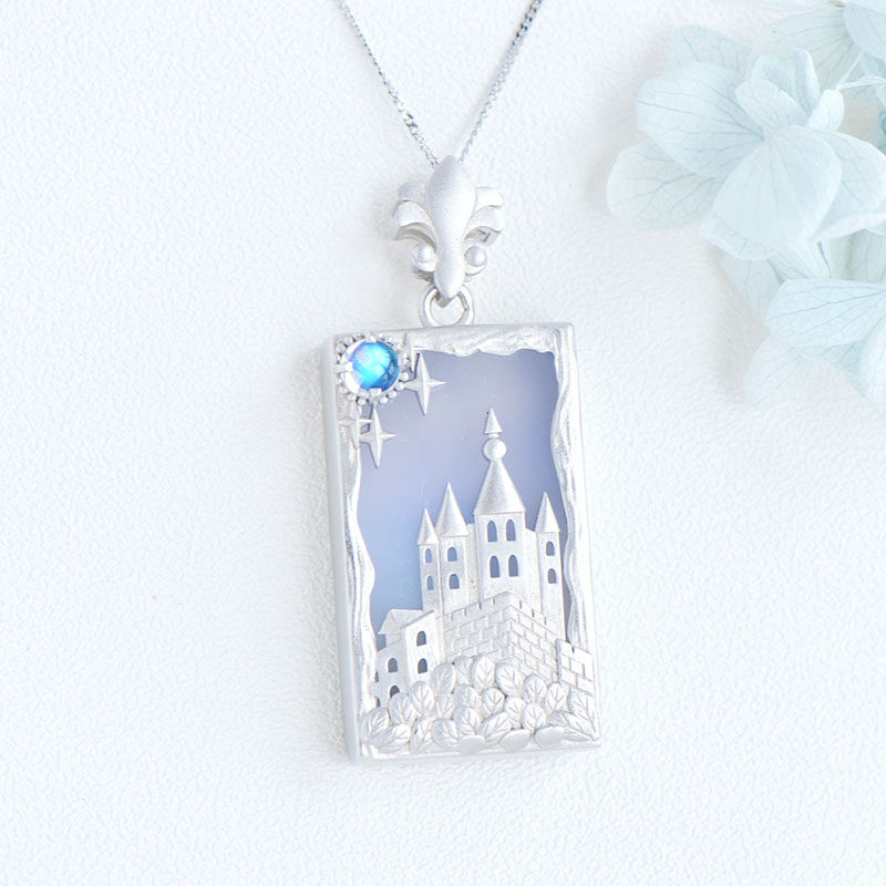 城堡月光石吊坠925纯银天然蓝玉髓项链女小众设计感锁骨链ins轻奢热门设计联盟服务商