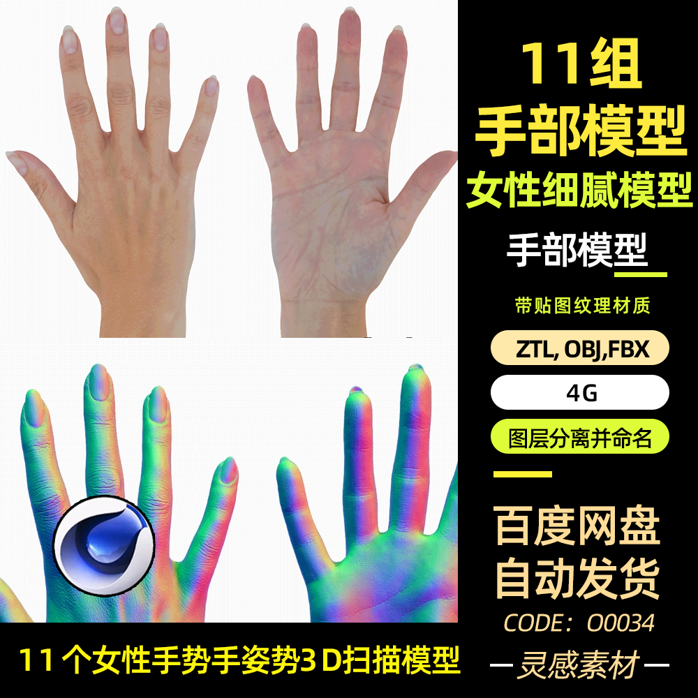 11组3d真实女性女士手势扫描影视级模型包套装cg贴图纹理手模型热门设计联盟服务商