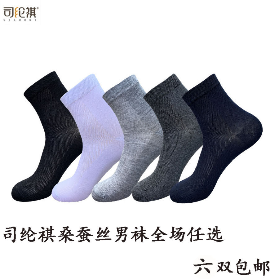 司纶祺桑蚕丝袜子男中筒夏季超薄款吸汗透气黑色商务男士短袜网面热门设计联盟服务商