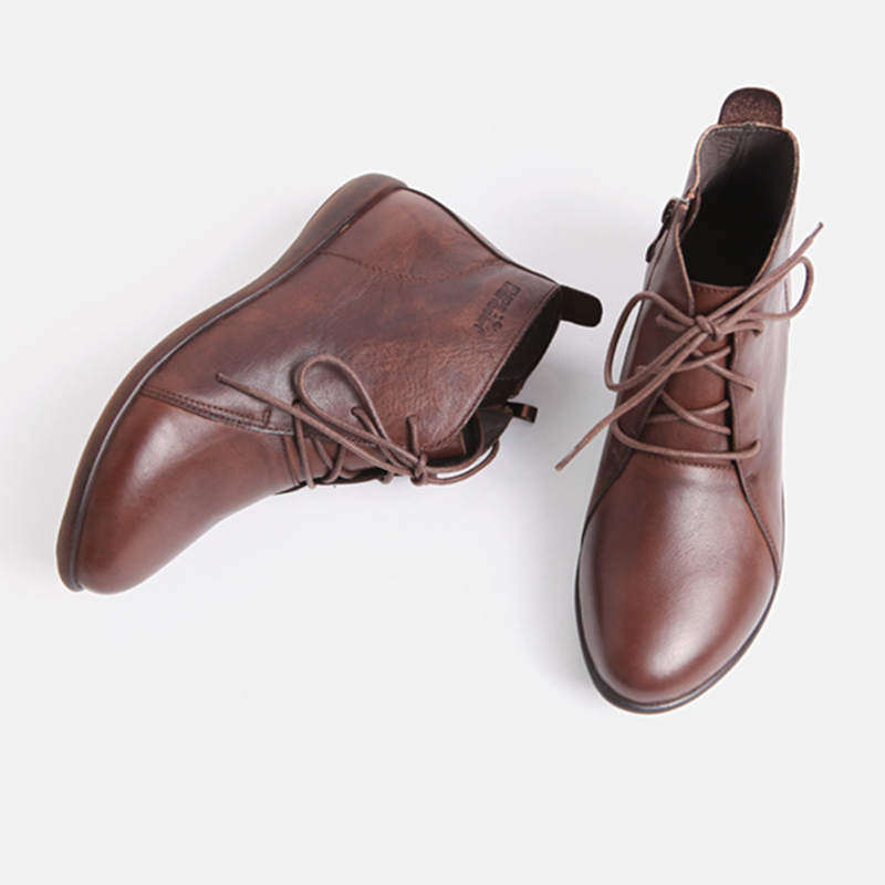 原创设计森女系简约真皮女鞋手工鞋头层牛皮低跟系带靴短靴子热门设计联盟服务商
