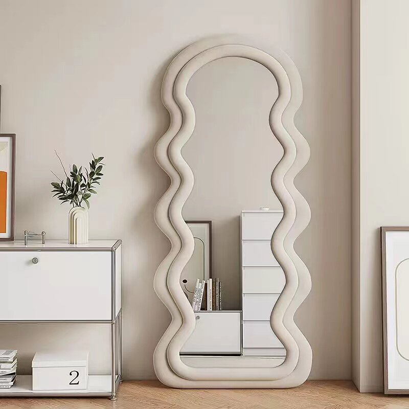 网红异形波浪镜子ins风全身穿衣镜家用卧室壁挂试衣镜靠墙落地镜